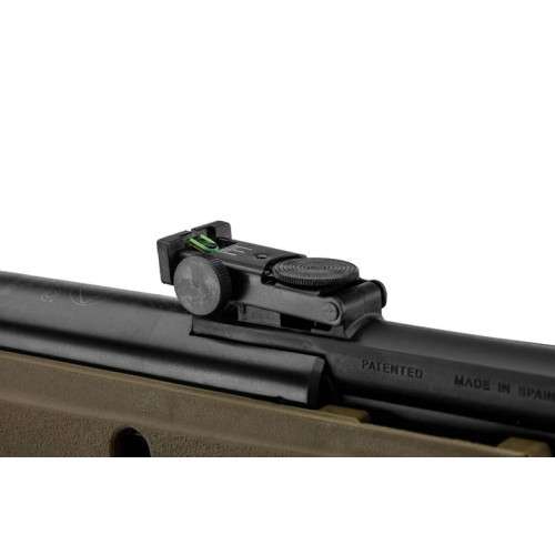 Приклад виконаний із міцного пластику та оснащений гумовим потиличником. Мушка гвинтівки виконана з фіброоптичними нитками двох контрастних кольорів – червоним та зеленим. Спусковий гачок оснащений гвинтовим регулюванням та неавтоматичним запобіжником. Балістична гвинтівка дозволяє вести прицільний вогонь на дальності до 70 метрів. Оригінальний зовнішній вигляд разом із першокласною якістю матеріалів гарантує справжнє задоволення від стрілянини з цієї гвинтівки. Крім того, ця гвинтівка стане чудовим подарунком будь-якому поціновувачу зброї.
