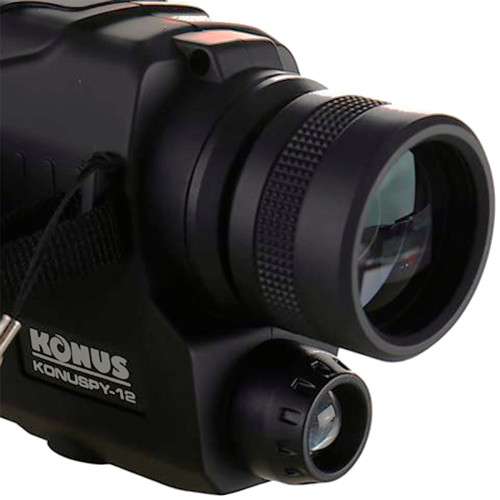 KONUS Konuspy-12 – легкий, компактний та доступний монокуляр нічного бачення (або прилад нічного бачення) з можливістю запису фото та відео на карту памʼяті. Потужний ІЧ-освітлювач дозволяє вести спостереження як при денному світлі, так і в абсолютній темряві. Максимальна дистанція ефективного спостереження складає 200 метрів. Прилад добре підходить для нічного полювання, дозволяючи виявити ціль в умовах повної відсутності освітлення. ПРИМІТКА! Зовнішня підсвітка в режимі ІЧ-освітлювача може бути видна з фронтального боку пристрою. Монокуляр нічного бачення KONUS Konuspy-12 має функцію плавної зміни збільшення в діапазоні від 1х до 8х. Зображення відображається на кольоровому РК-екрані. Якщо увімкнути функцію ІЧ-підсвітки, зображення буде чорно-білим. Наведення різкості здійснюється за допомогою кільця фокусування на об єктиві. Працює монокуляр від 3-х батарейок типу АА.