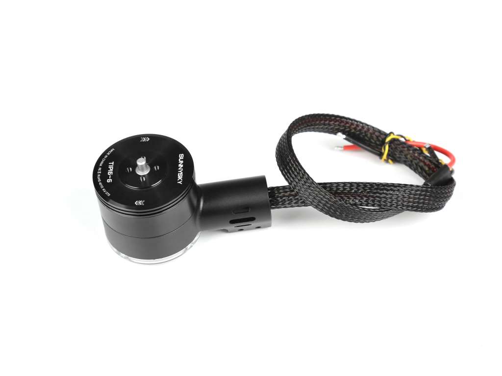 Choosing a SunnySky integrated motor, ESC, and propeller combination for your power system is a straightforward process. The digits following 'T' denote the suggested thrust in kilograms, while those following 'P' indicate the propeller's diameter and pitch. For instance, a setup labeled as T08P15-4 signifies that the system can consistently produce a thrust of 0.8 kilograms by utilizing a 15-inch propeller with a 4-inch pitch. Additionally, the motor includes built-in LED lights and an arm-mounting feature. These attributes streamline the motor selection process and simplify its installation and setup.