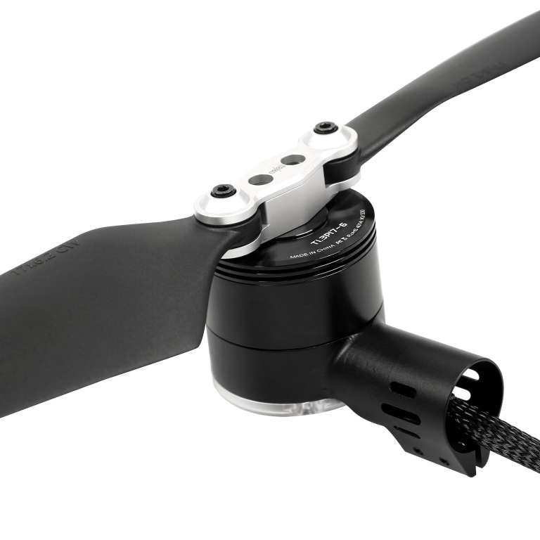 Choosing a SunnySky integrated motor, ESC, and propeller combination for your power system is a straightforward process. The digits following 'T' denote the suggested thrust in kilograms, while those following 'P' indicate the propeller's diameter and pitch. For instance, a setup labeled as T08P15-4 signifies that the system can consistently produce a thrust of 0.8 kilograms by utilizing a 15-inch propeller with a 4-inch pitch. Additionally, the motor includes built-in LED lights and an arm-mounting feature. These attributes streamline the motor selection process and simplify its installation and setup.