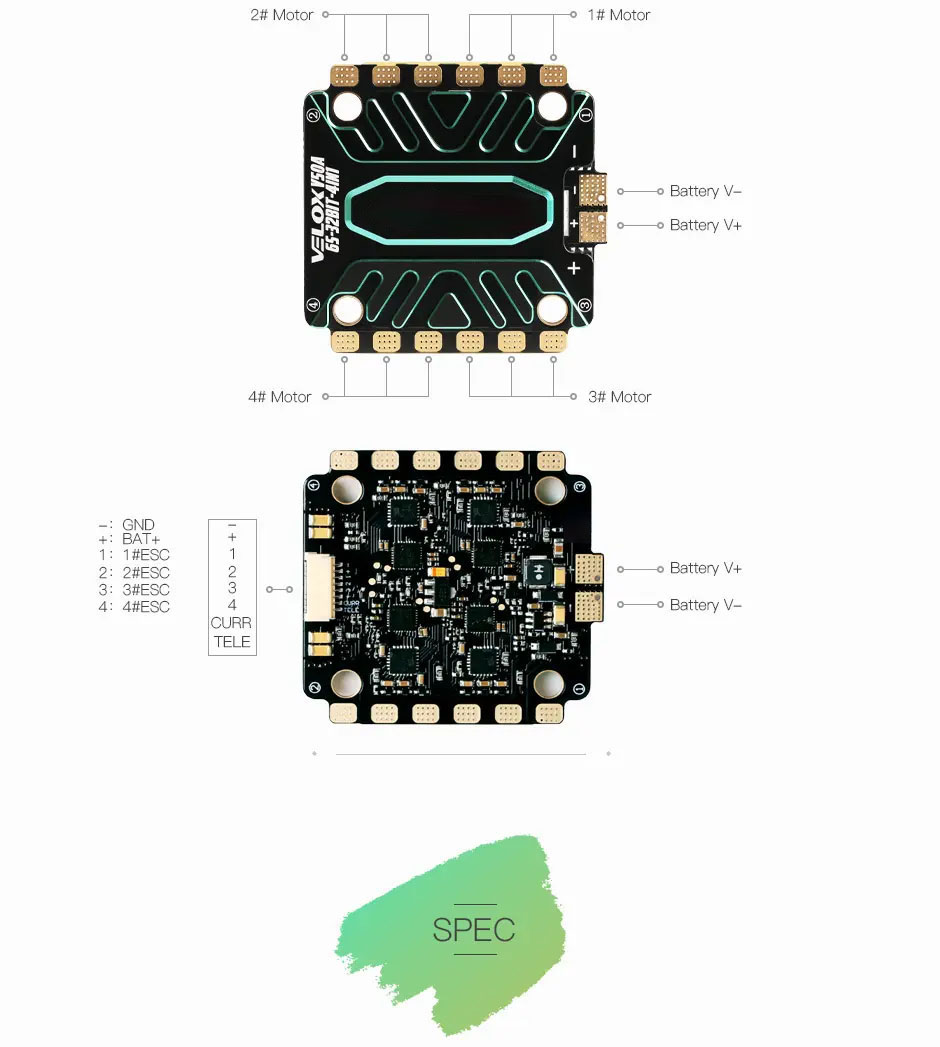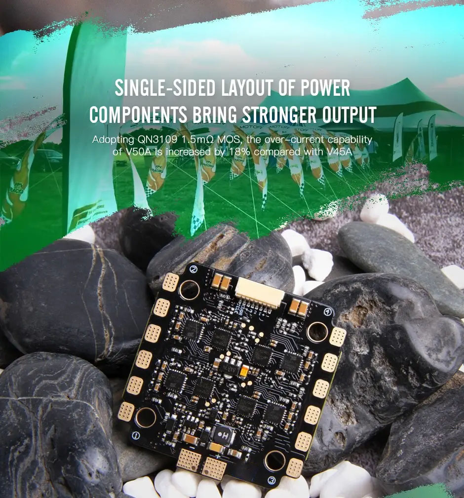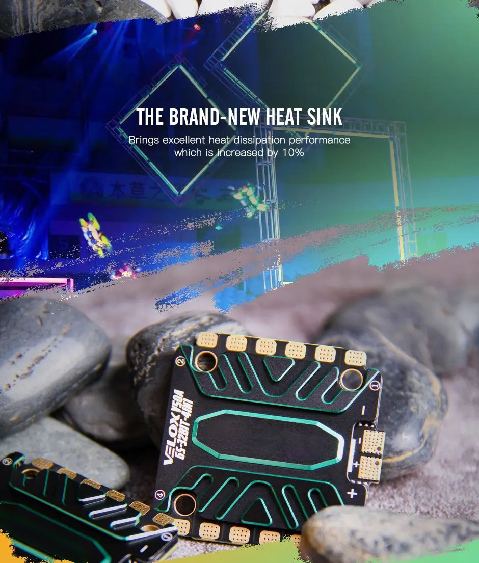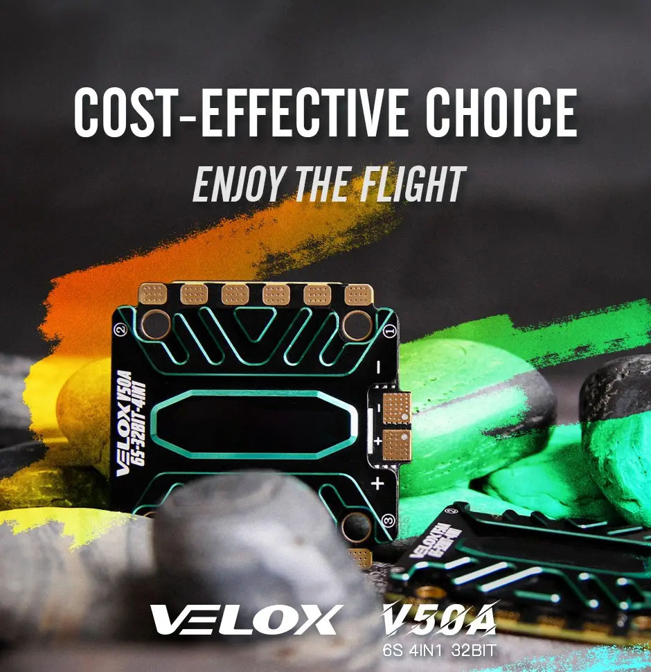 Обновленный регулятор T-HOBBY Velox V50A 4-в-1 получил прирост производительности на 15%, что позволяет летать уверенно даже в условиях высоких токовых нагрузок. Новый дизайн радиатора сделал отвод тепла на 10% эффективнее, а увеличенные контактные площадки значительно упрощают процесс пайки.