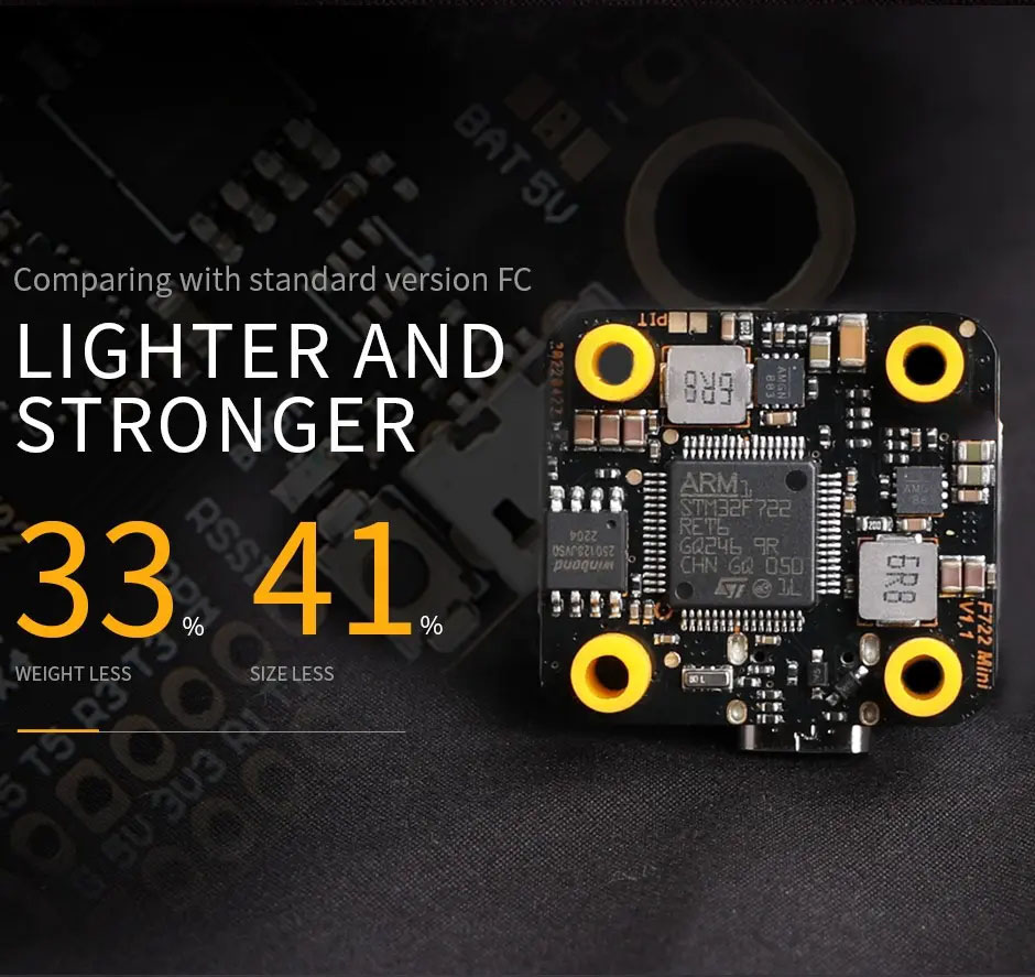 Контролер ідеально підходить для 5-дюймових гоночних дронів. Високопродуктивний 32-бітний процесор забезпечує миттєвий відгук системи.