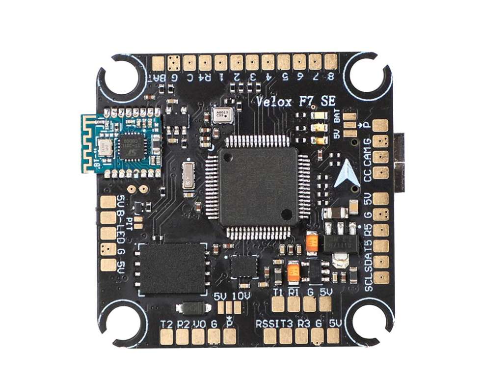 The Velox F7 SE flight controller uses the STMF722 chip with a processing speed of 216MHz, which has strong computing power and stability.