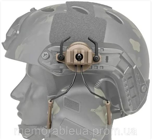 Універсальні кріплення для шоломів оснащених рейкою. Фіксатори знімні, підтримка повороту на 360 градусів, надійно фіксуються "вусами" в рейки шолома. Адаптерна рейка шолома 19-21 мм, повністю адаптована. Регульована відстань між навушниками та вухом, щоб ви відчували себе комфортно. Сумісні з навушниками: - Walkers razor - Howard Leight - Earmor - Peltor comtac