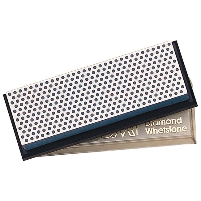 Алмазный точильный камень Whetstone™ DMT 6" W6CP, как и другие модели серии Whetstone™ DMT 6", отлично подойдет тем, кому нравится добротный и качественный инструмент. Достоинства этого точильного камня – практичный пластиковый футляр, основание на специальных резиновых «противоскользящих» ножках, компактный – порядка 15 см – размер.
