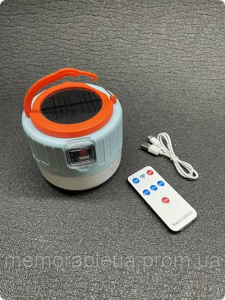 Функції: - аварійне освітлення дому. - зарядка для телефону. - портативний powerbank. Живиться від вбудованої батареї та сонячної панелі, стійка до пилу, ударів, бризок, успішно працює у зовнішніх умовах. Забезпечує потужне джерело світла завдяки використанню світлодіодів. Має 3 режими освітлення: потужнє сітло, середнє, sos. Керування з пульта дистанційного керування; Зі зручною ручкою у формі гачка, ви можете швидко повісити її в будь-якому місці; Лампа оснащена потужним акумулятором, що дозволяє одній зарядці світитися до 8 - 12 годин; Заряджання акумулятора здійснюється сонячним світлом в денний час або за допомогою USB-кабелю; Тип батареї: літієво-іонний; Матеріал корпусу: АБС-пластик; Варіанти освітлення: може використовуватися як усередині приміщень, так і зовні, що дає йому величезний спектр застосування. Портативний Powerbank для вашого телефону.