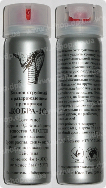 Кобра 1С один из самых эффектных газовых струйных баллончиков украинского производителя предназначен для самообороны лиц, которым исполнилось 18 лет.