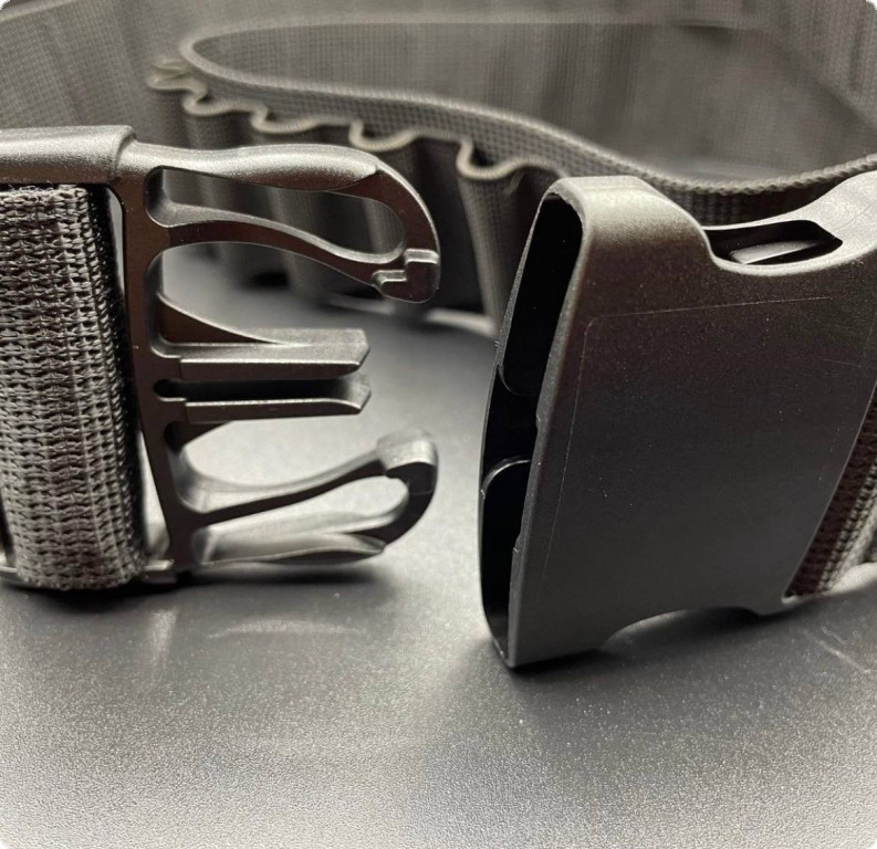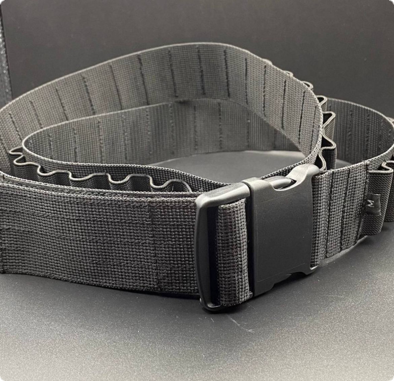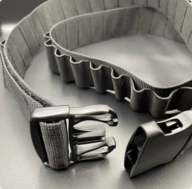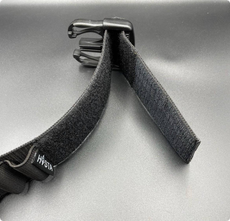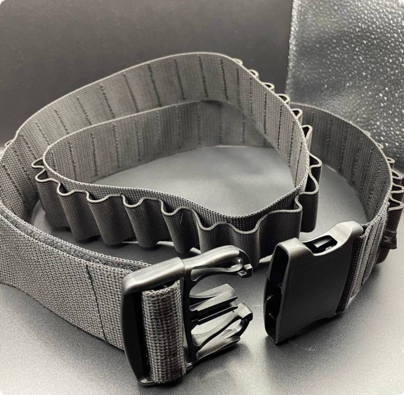 Патронташ із фастексом від компанії Hasta, що розрахований на 55 набоїв. Виготовлений з ремінної стрічки, яка витримує нагрузку на розрив близько 1000 кг. Петлі для набоїв виготовлені з еластичної стрічки, яка відмінно утримує патрон. Цей патронташ підходить для патронів 12 або 16 калібру. У цій бандольєрі використовується фурнітура YKK.