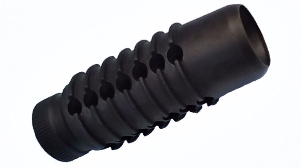 Дульное устройство изготавливается фрезерованием на ЧПУ из цельного куска высокопрочной жаростойкой стали, что исключает поломки, рассыпание при сильном нагреве и длительном использовании.