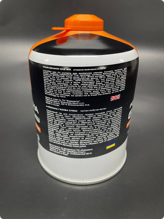 Чотирисезонна суміш: пропан забезпечує вище випаровування парів газу в холодну погоду, ізобутан забезпечує постійну роботу балона навіть при малому обсязі газу.