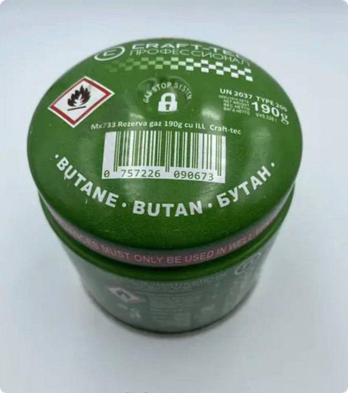Одноразовий газовий картридж з бутаном, для ламп паяльних, газових пічок, газових примусів.