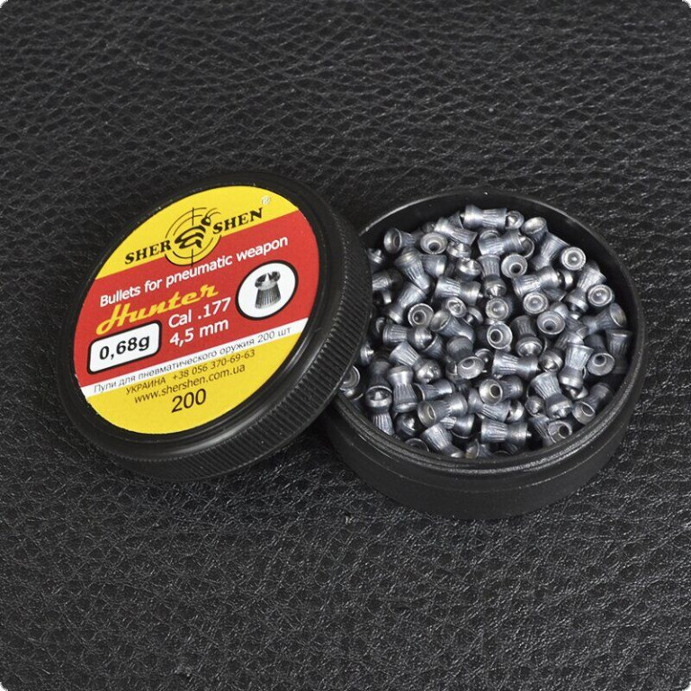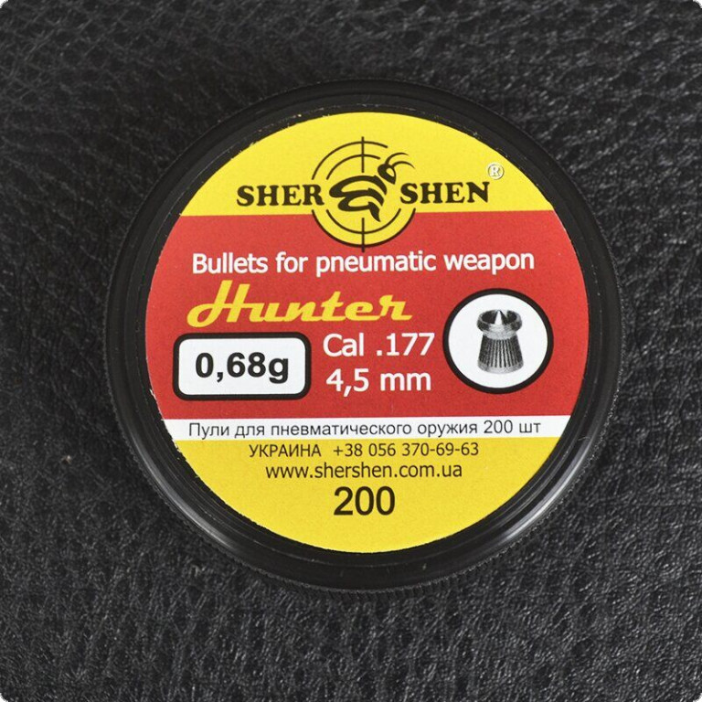 Пули серии Шершень Hunter 0,68 г в первую очередь предназначены для охоты, это обусловлено высоким показателям экспансивности. Все это благодаря осnрому носику и радиальным углублением, которое помогает увеличить пулю в несколько раз после попадания. Хоть и охота с пневматическим оружие запрещена на территории Украины, при этом многие пренебрегают этим правилом и все равно охотятся с такой пулей на птиц (утки, фазаны, вороны), мелких пушных зверей, а некоторые умудряются получить в качестве трофея даже зайца. Данный вид заряда рекомендуется использовать в пневматических винтовках со скоростью не менее 250 м/с, тогда пуля правильно раскроется при попадании. Для стрельбы по мишеням эта пуля не подходит, она менее точная, чем матчевые боеприпасы.