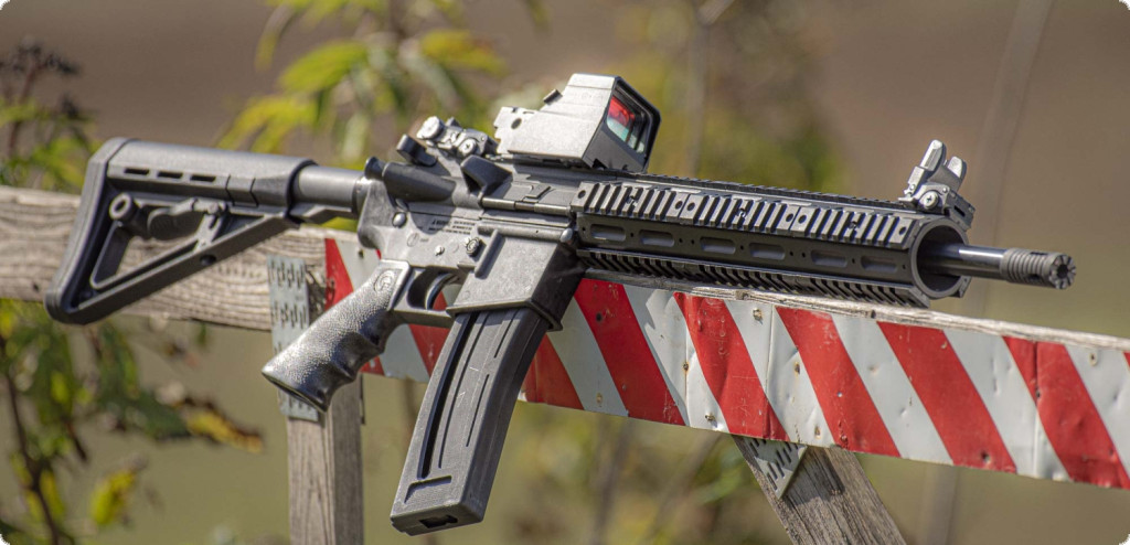 - Аксесуари: Має квадратну напрямну довжиною 11.8 дюймів для тактичних аксесуарів і повнорозмірну шину MIL-STD 1913 Picatinny для оптики.