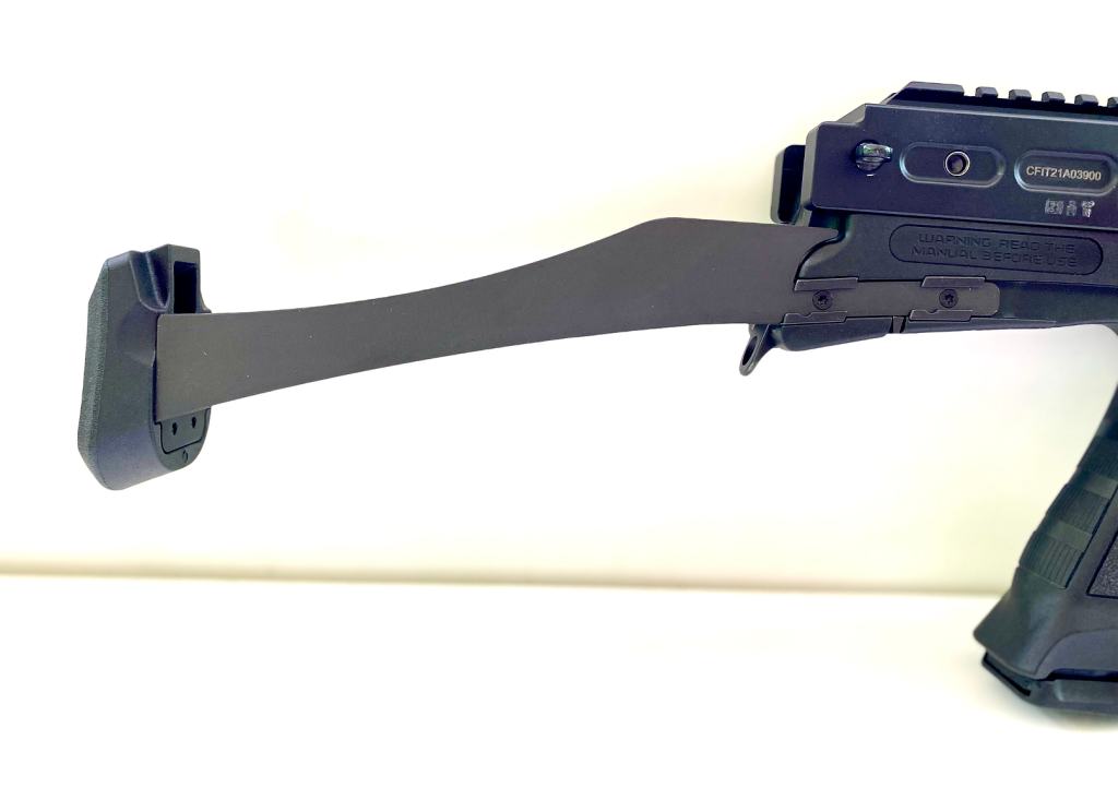 Приклад CBR-9 «Чорний носоріг», розроблений для мінімізації обтяження та забезпечення природної точки прицілювання, можна подовжувати у двох положеннях. Він також надзвичайно простий, складається з двох металевих розпірок і невеликого чорного жорсткого полімерного приклада