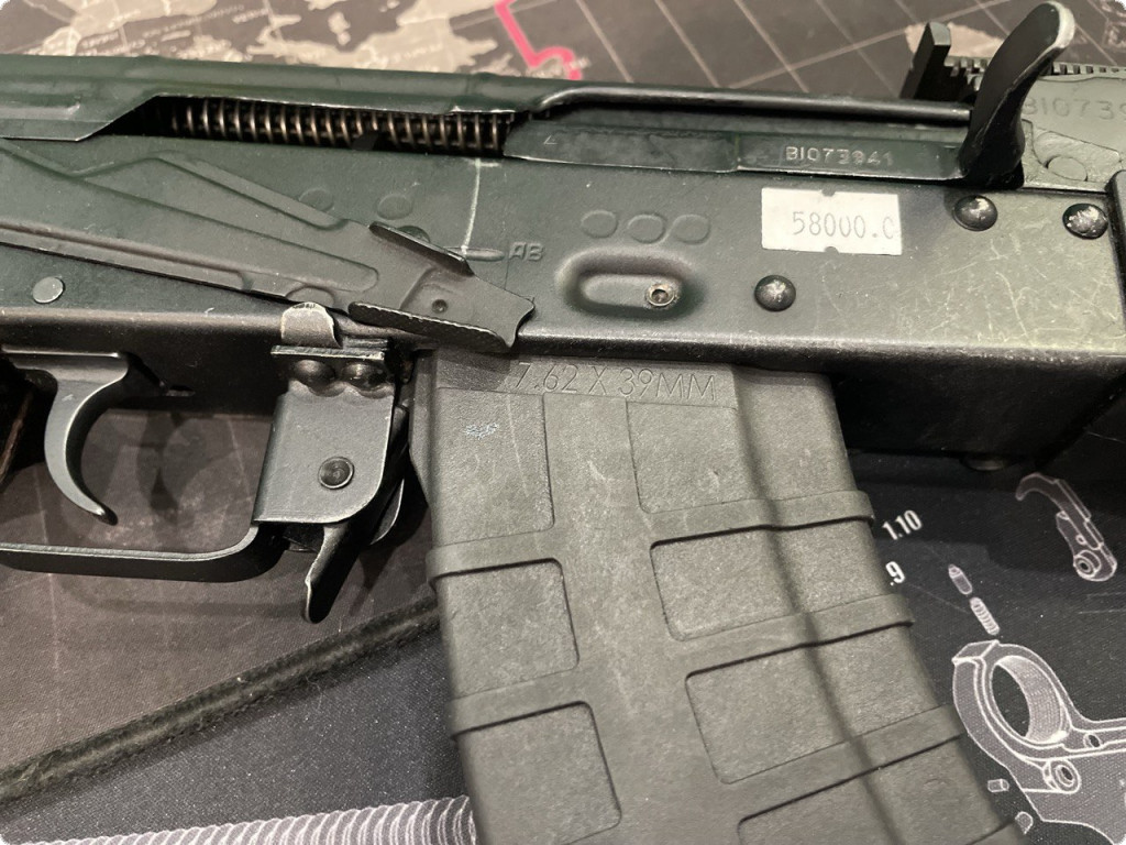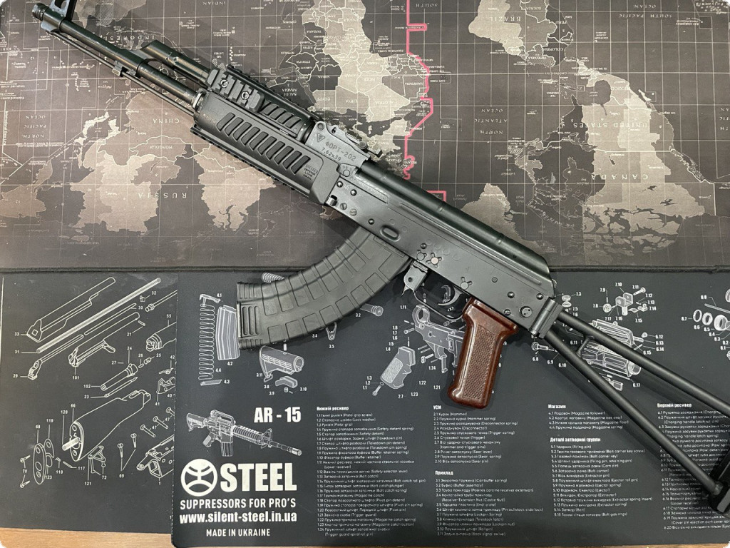 Карабін АКМС Форт 202 калібр 7.62х39 бічний приклад - АКМС (Автомат Калашникова модернізований складаний) 69-70-х років випуску. Перед вами громадянська версія карабіну, в якомі відсутній режим автоматичного вогню та штик-ніж, також на карабін встановлено складаний бічний приклад з блокуванням стрільби у складеному положенні. Переробку здійснено однойменним Вінницьким Збройовим Підприємством Форт.
