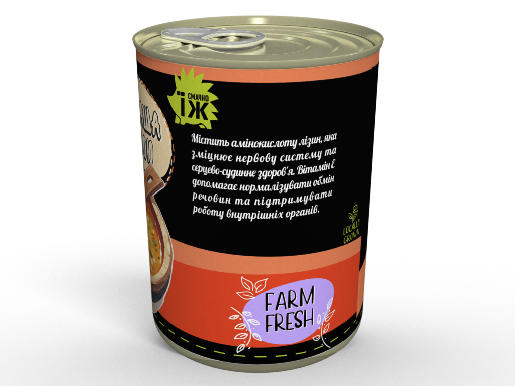 Склад: крупа горохова, баранина, цибуля, морква, перець болгарський, часник, томатна паста, італійські трави, сіль, суміш перців, лавровий лист, олія соняшникова.