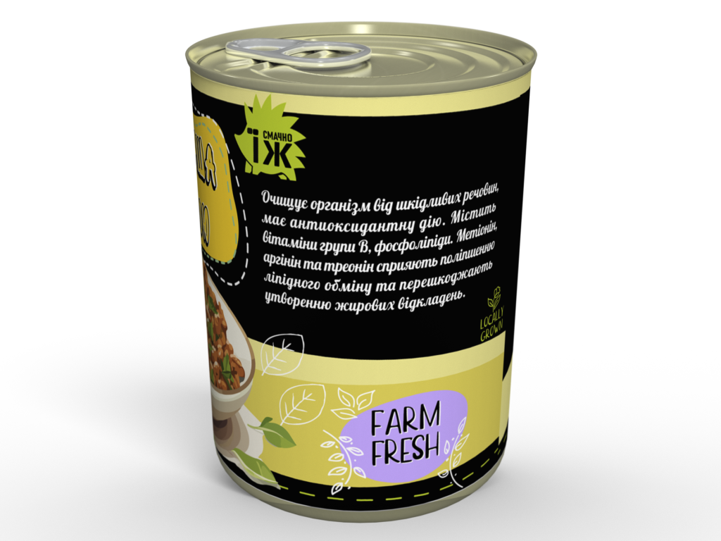 - Дата виробництва та строк придатності зазначені на кришці банки.
