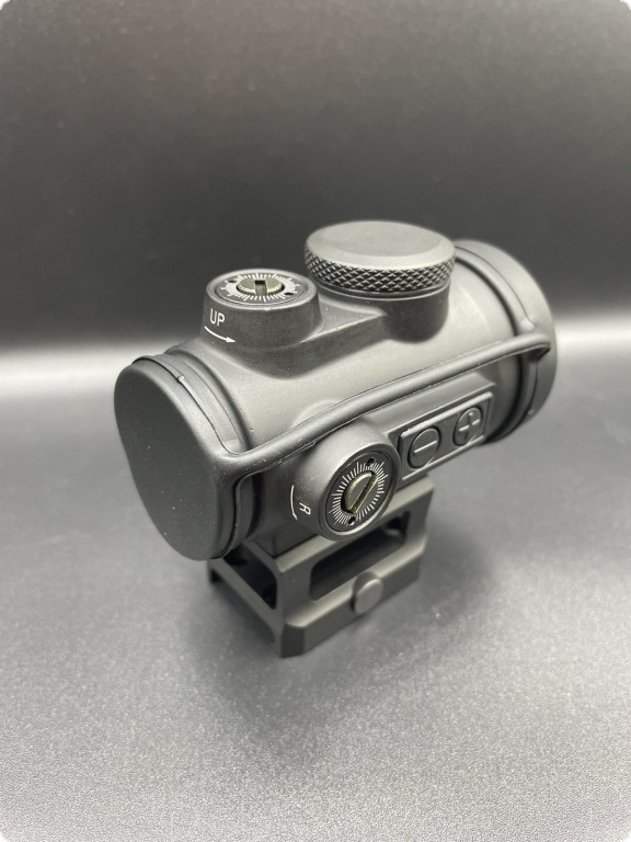 Время работы 20000 часов, размер точки 3MOA, короткий фокус и широкий угол обзора, 7 уровней яркости плюс один для приборов ночного видения, высокое и низкое крепление Picatinny и крышка объектива в комплекте.