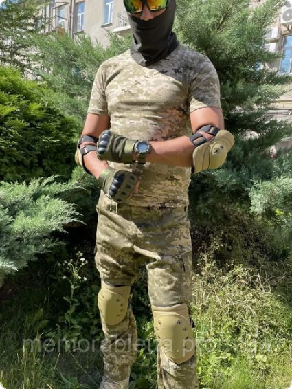 Призначений для запобігання пораненню та будь-якому пошкодженню суглобів. Налокотники та наколінники виготовлені з кількох матеріалів: «Чашка» - полімерна пластина для ліктів і колін виготовлена з ударопротного матеріалу, має анатомічний профіль (вигин), підходить для критичних температур +/ С градусів. Сама пластмасова пластина має шероховату поверхню, що усуває або зменшує ковзання на різних формах поверхонь. З внутрішньої сторони чаша має текстильну основу з можливістю вставки пінополіреетану або інших еластичних і м’яких матеріалів, та з’єднана композитними заклепками з отворами для відводу вологи або рідкого бруду. Захист зміцнюється твердими стрічками та міцною, надійною липучкою. Всі чотири щитки поставляються в легкому і надійному мішечку-сітці з затяжкою. Підходять майже для всіх розмірів колін.