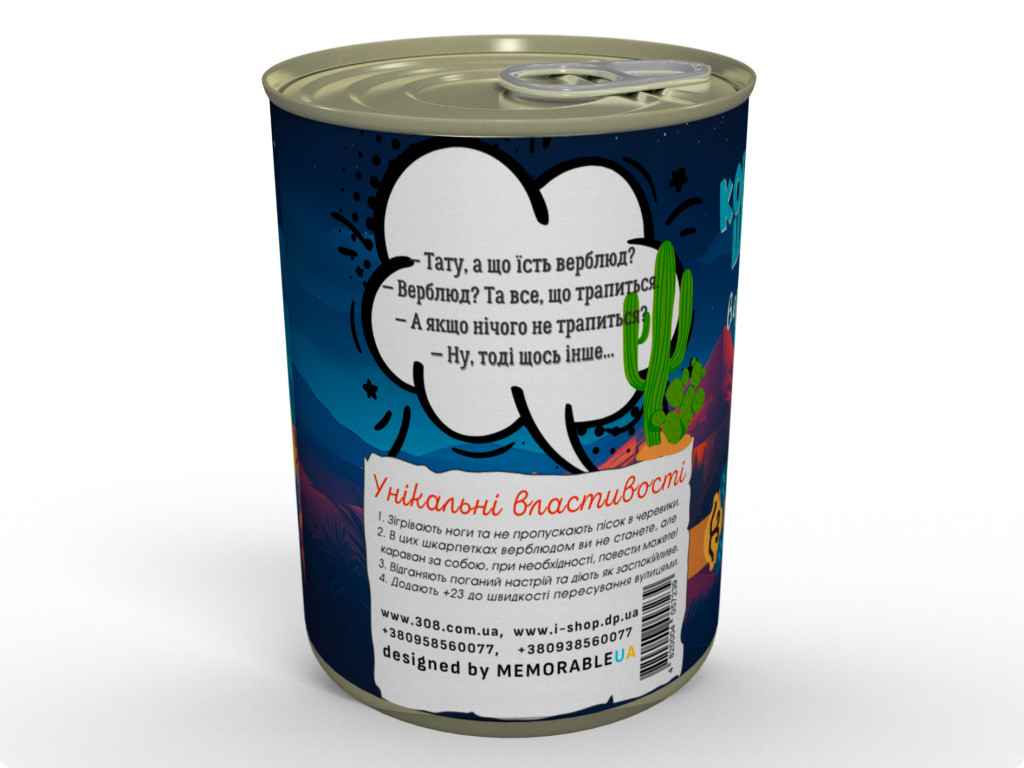 Консервированные носки из шерсти верблюда очень теплые и уютные. Это очень полезный и практичный подарок, ведь получатель сможет носить носки всю холодную пору года, особенно тогда, когда отключают электричество и отопление.