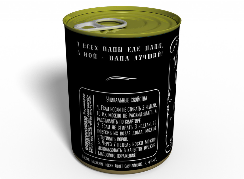 Консервированные носки лучшего папы - отличная идея для оригинального подарка, который вызовет удивление, ведь это действительно необычный мужской подарок. Такой сувенир подойдет практически всем мужчинам, главное, чтобы он был вам папой.