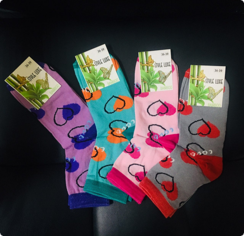 Состав: женские хлопковые цветные носки (цвет случайный), размер 36-40, одна пара.