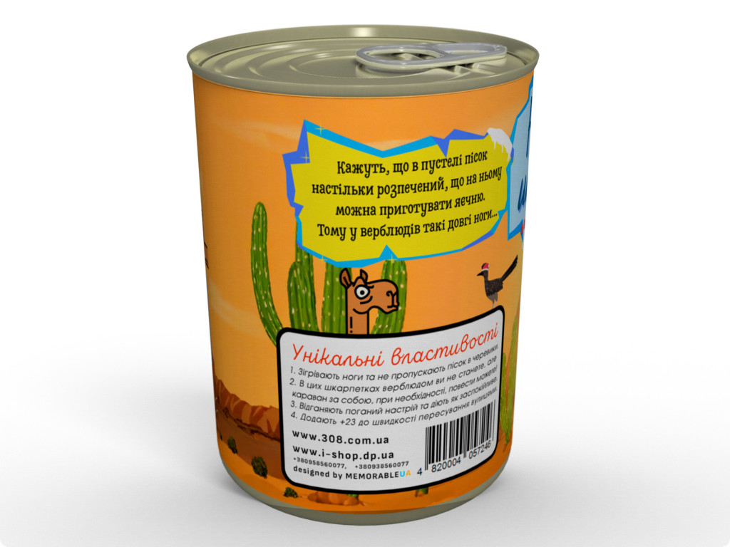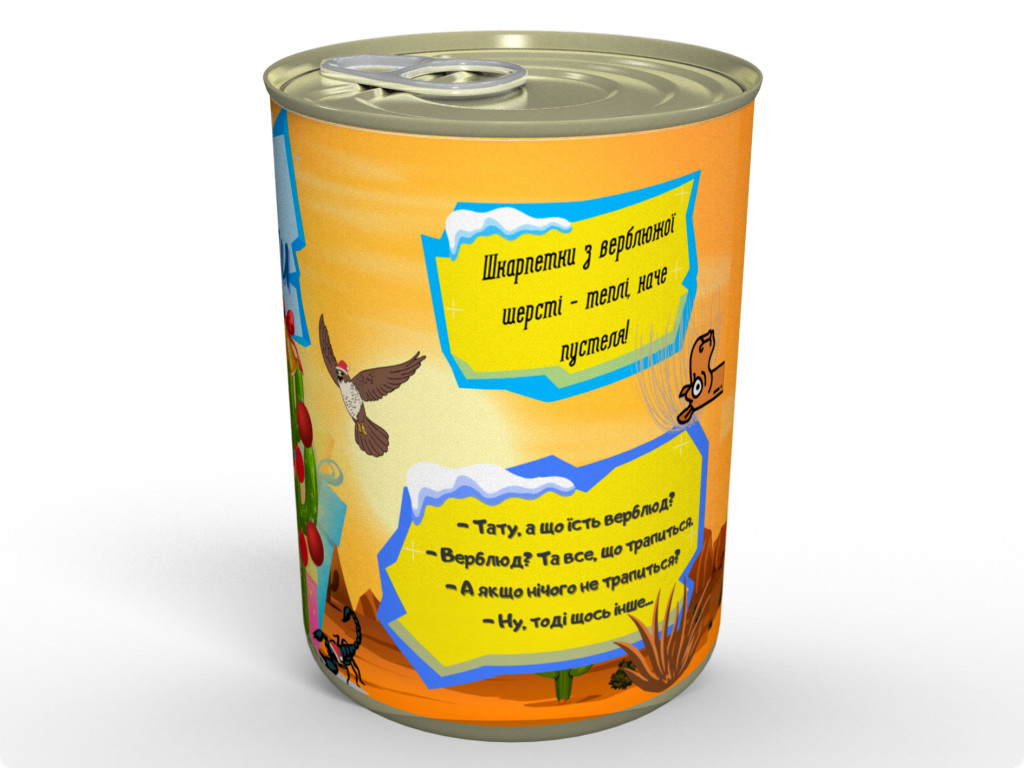 Консервированные носки из шерсти верблюда очень теплые и уютные. Это очень полезный и практичный подарок, ведь получатель сможет носить носки всю холодную пору года, особенно тогда, когда отключают электричество и отопление.