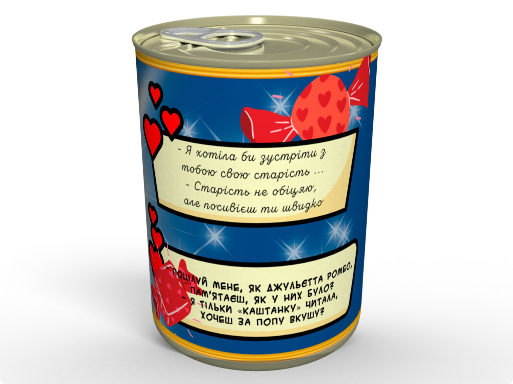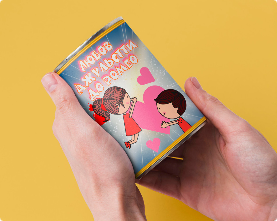Також ми можемо зробити унікальний дизайн саме для вас. І покласти все, що завгодно в консервну банку.