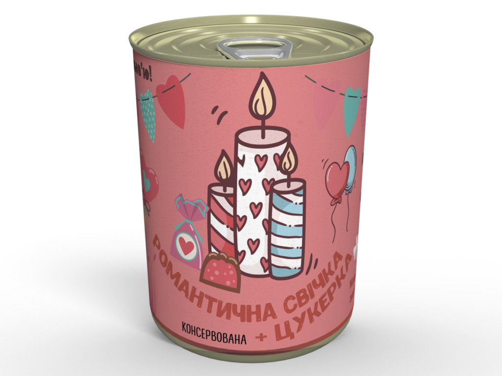 Консервована Романтична Свічка та Цукерка для 14 лютого- Аксесуар для Романтики - Незвичайний подарунок на День Закоханих.