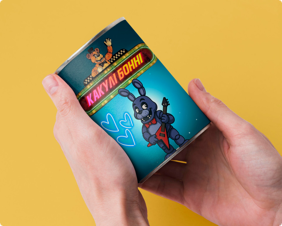 Якщо ви або ваші близькі полюбляють популярний фільм П'ять ночей із Фредді, то ці баночки точно будуть вам довподоби! Задавайте нервовий вайб, даруйте друзям подарунки та емоції вже зараз!