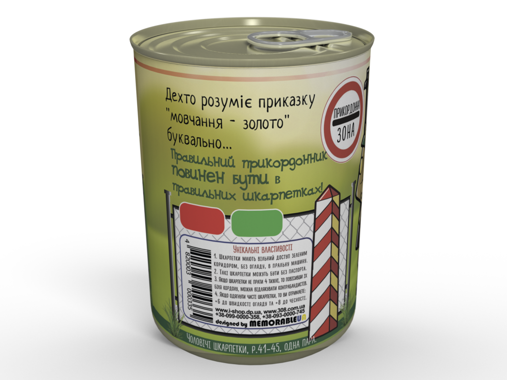 Консервовані Перевірені Шкарпетки Правильного Прикордонника - Подарунок На День Прикордонника. 30 квітня відзначається День Прикордонника в Україні. Це свято відзначається з 1992 року, лише дати були інші, а 30 квітня відзначається з 2018 року. При цьому деякі прикордонники можуть відзначати і по-старому: 28 травня та 4 листопада. Для такого свята ми виготовили нову банку зі шкарпетками, яку можна подарувати прикордоннику України – Консервовані Перевірені Шкарпетки Правильного Прикордонника. Якщо подарувати такий подарунок прикордоннику, він стане більш пильним.
