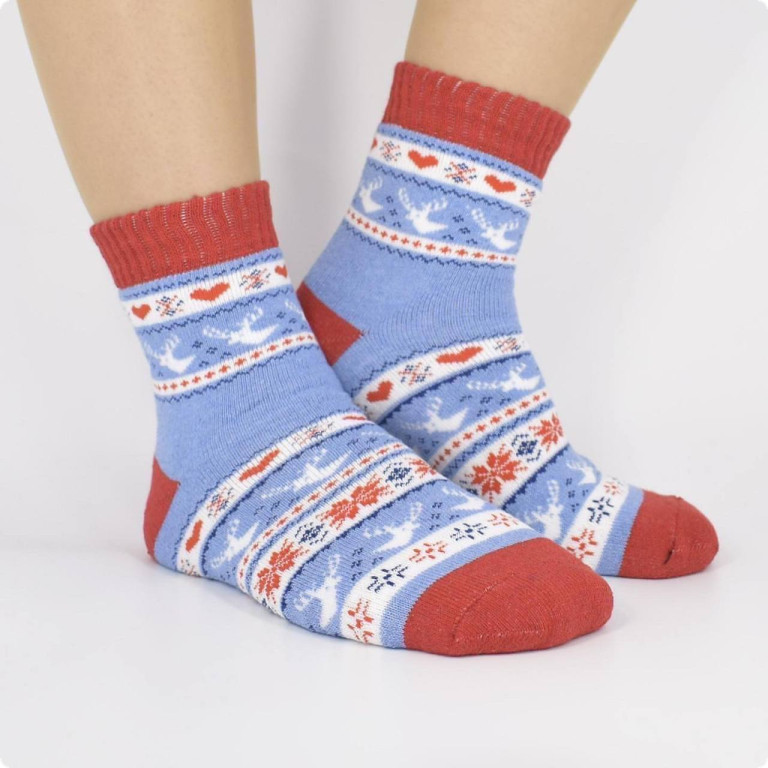 Склад: жіночі махрові новорічні шкарпетки (колір випадковий), розмір 36-40, одна пара.