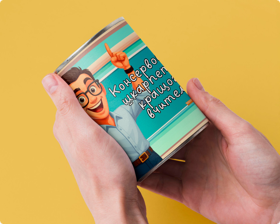 Текст на банці зі шкарпетками Кращого Вчителя: