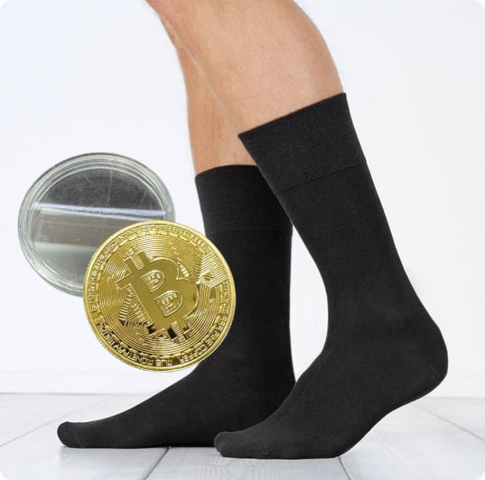 Склад:чоловічі або жіночі бавовняні шкарпетки, монетка "біткоїн"