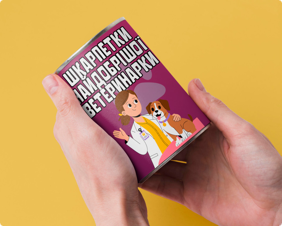 Текст на банці зі Шкарпетками Найдобрішої Ветеринарки: