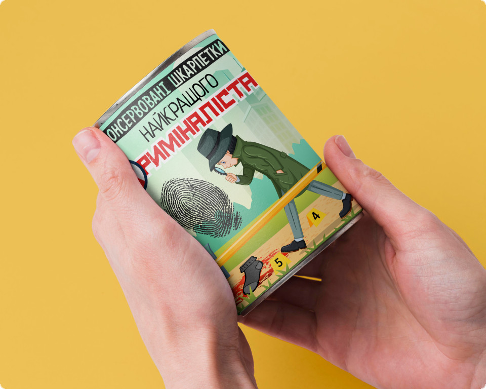 20 червня святкує свій День експертна служба МВС України і звичайно ж криміналісти дуже хочуть отримати собі подарунок. Працівників такої професії досить складно здивувати, адже вони вже надивилися на багато що. А такого подарунка, як ми пропонуємо, точно не бачили - Консервовані Шкарпетки Найкращого Криміналіста.