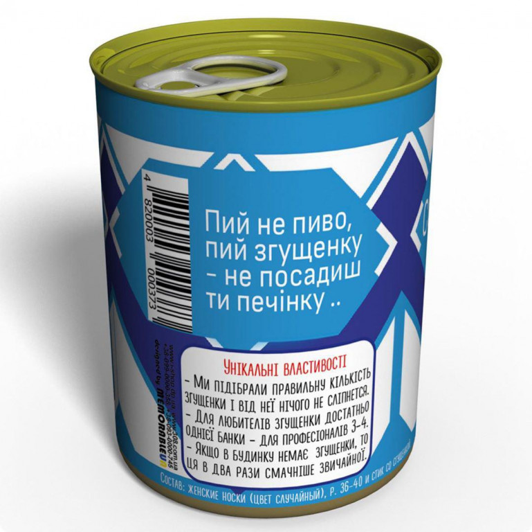 Ваша кохана і дня не може прожити без солодкого? Тоді ви прийшли за вірною адресою, адже ми пропонуємо подарунок, який можна з'їсти, і який залишиться у вас, нехай не на довгі роки, але на пару місяців точно. Консервовані шкарпетки і згущене молоко - незвичайний, смачний і корисний подарунок! Затишні різнокольорові шкарпетки і солодке згущене молоко - незабутній смак дитинства.