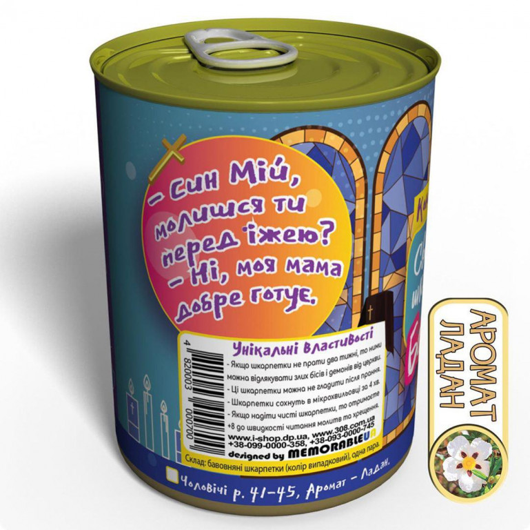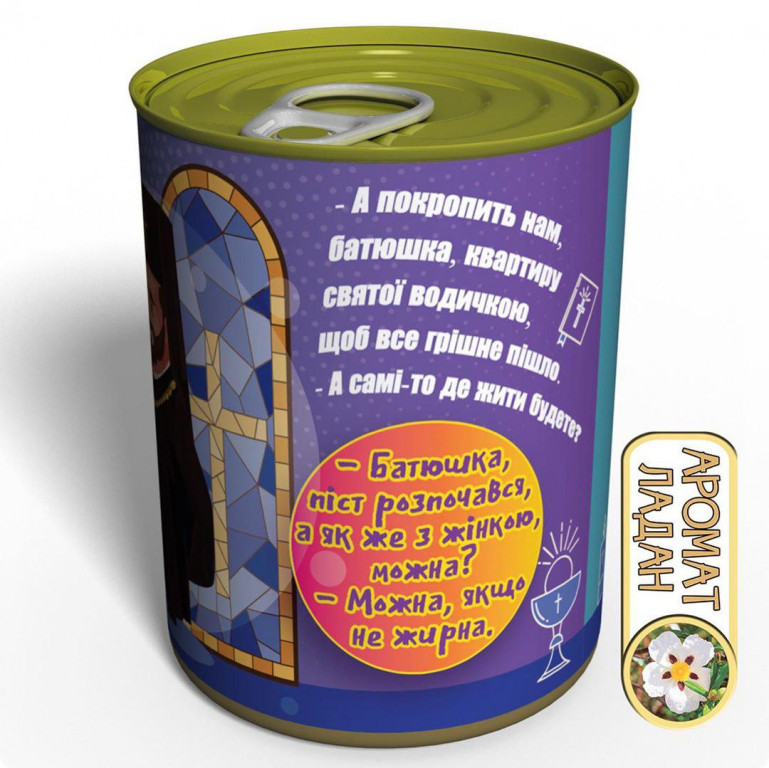 У нашій країні багато церков, але далеко не всі з них "справжні", а просто бізнес. При цьому є й хороші церкви, з правильними "батюшками", і якщо ви такого знаєте, то його йому можна подарувати подарунок - Консервовані Священні Шкарпетки Батюшки.