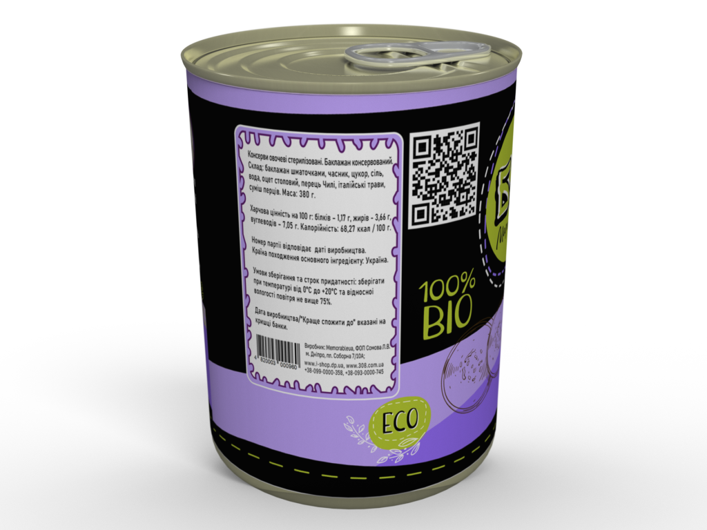 Консерви овочевi стерилiзованi. Баклажан консервований.