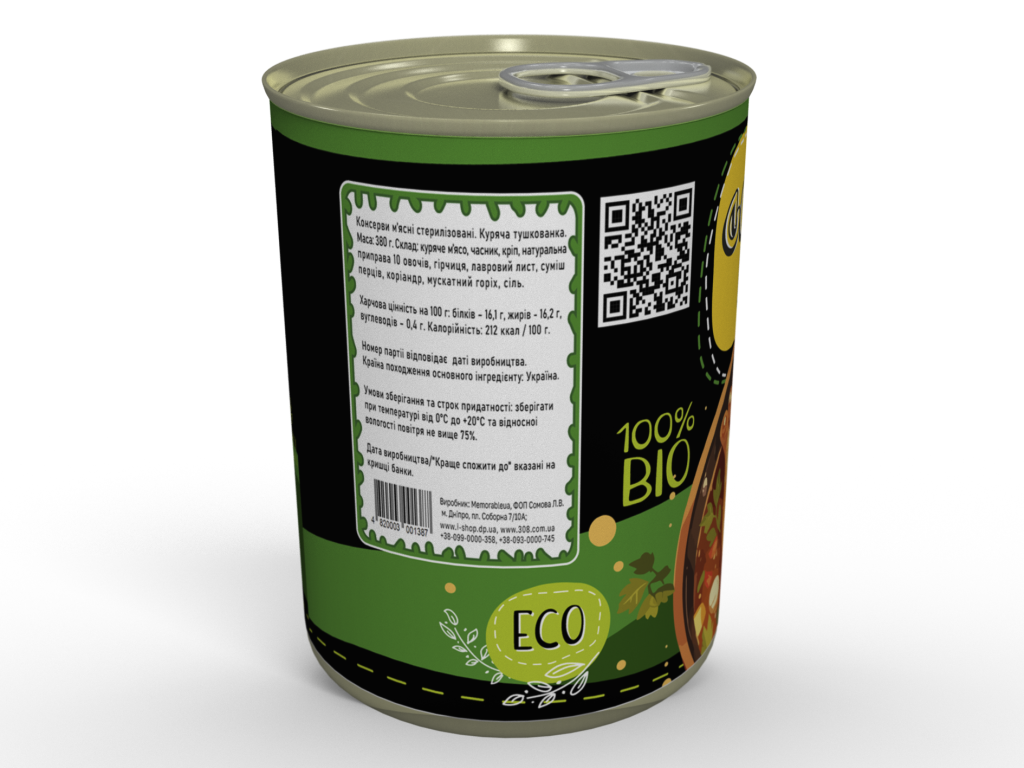 Консерви м’ясні стерилiзованi. Куряча тушкованка.
