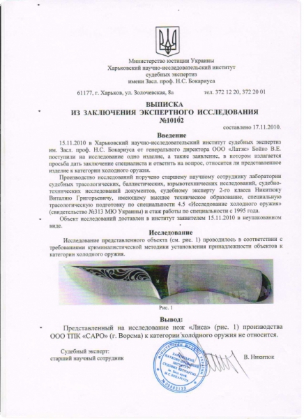 | Марка стали клинка | 65x13 |
