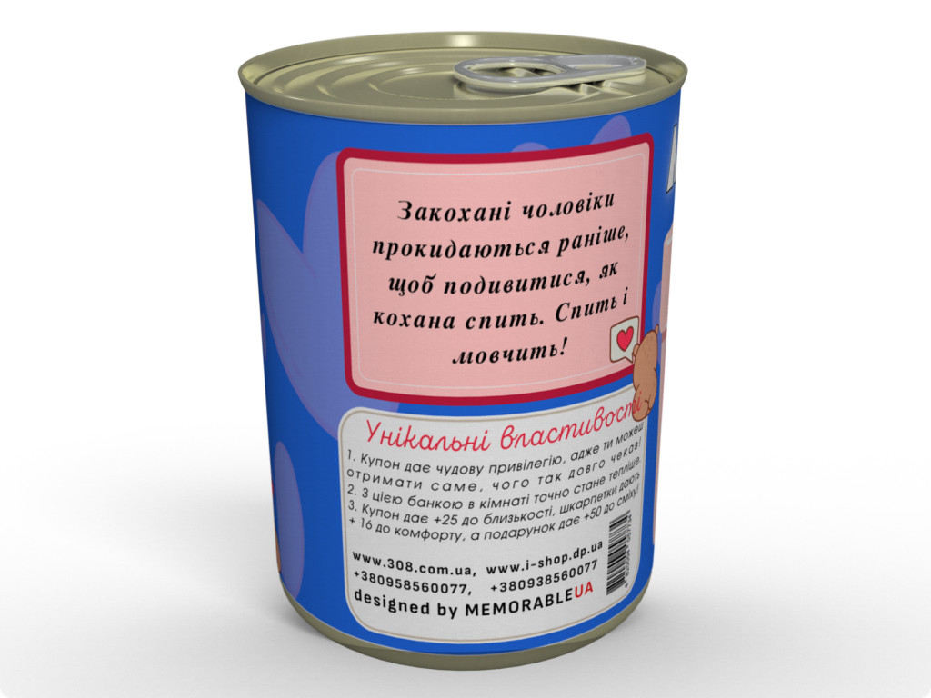 Хочеться зробити приємно своєму коханому? Це чудово! І не варто чекати якогось приводу чи свята, адже наша баночка-сюрприз з любовним купоном приємно вразить кожного представника сильної статі!Давайте створювати дива разом! На купоні може бути ваш напис, а може бути наш, рандомний.