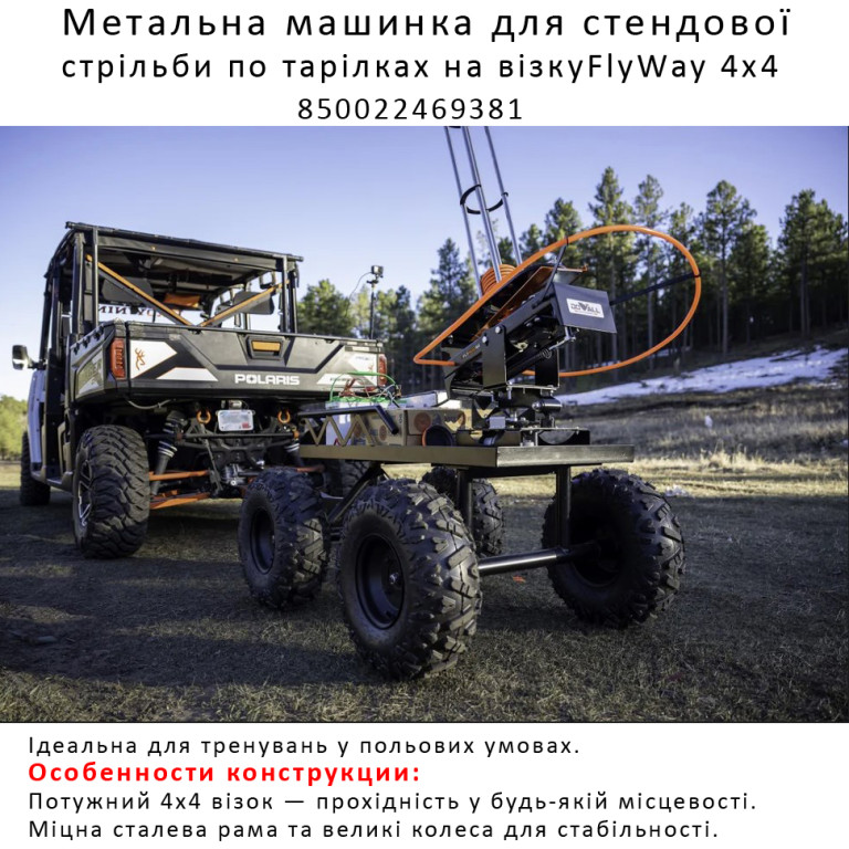 Ідеальний вибір для професіоналів і любителів! FlyWay 4x4 поєднує автономність, прохідність і ефективність для стрільби по тарілках у будь-якому середовищі — від полігону до лісової галявини.