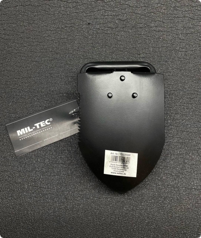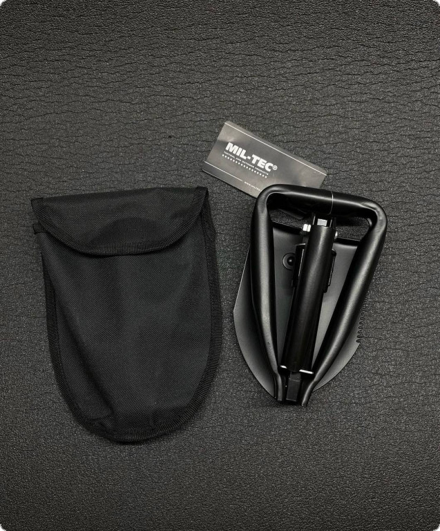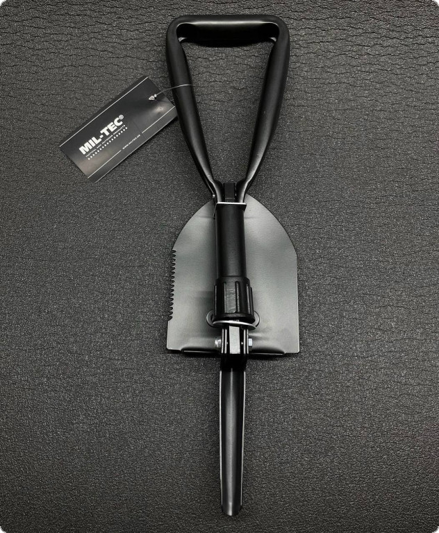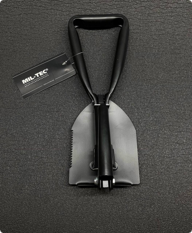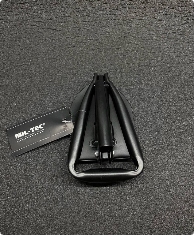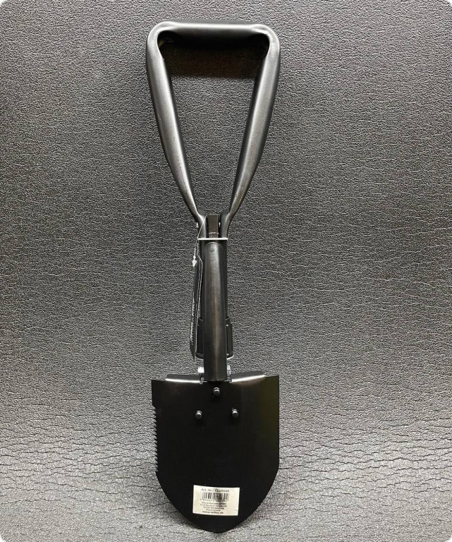 Складна лопата з міцного металу покрита шаром чорної матової захисної фарби. Технічні дані: Матеріал: сталь Розміри в складеному вигляді: 21 х 13 х 6 см Розміри в розкладеному вигляді: 48,5 х 13 х 5,5 см Розмір леза: 17,5 х 13 см Вага: 780 г