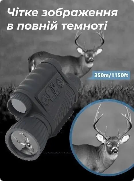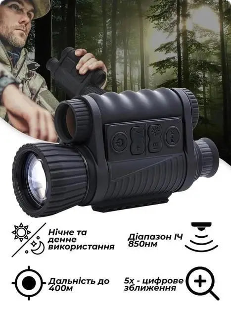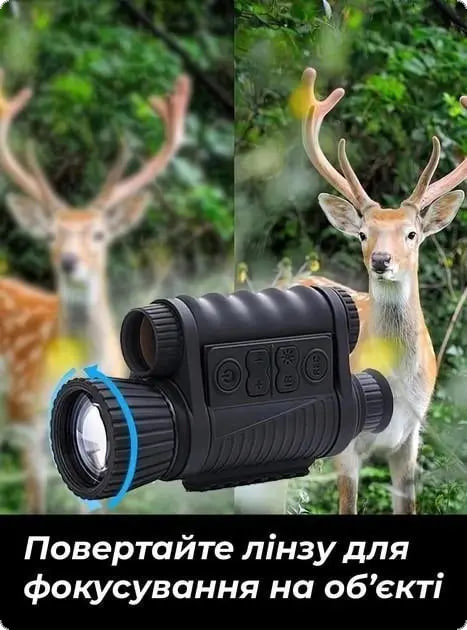 Цей монокуляр оснащений цифровим зумом від 1.0x до 5.0x, що дозволяє детально розглядати об'єкти на великих відстанях. Вбудований TFT-дисплей діагоналлю 1,5 дюйма забезпечує яскраві та чіткі зображення, роблячи процес спостереження комфортним та зручним.