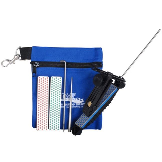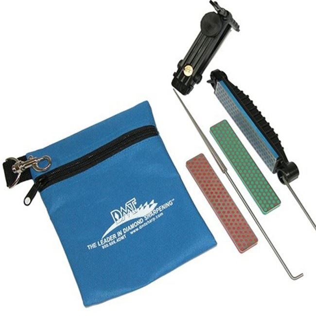 Набор для заточки Aligner™ DELUXE DMT ADELUXE содержит все необходимое для заточки и ухода за лезвиями. В него входят три точильных камня с алмазными рабочими поверхностями, устройство для заточки лезвия под разными углами и сумка для хранения и переноски. Точильные камни подобраны таким образом, чтобы обеспечить проведение всех операций по заточке лезвий.