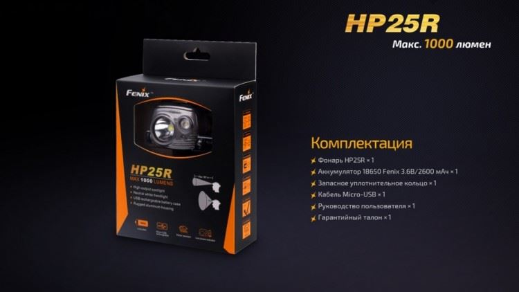 Гарантия: Фонари модели Fenix HP 25R продаются с гарантией на пять лет.