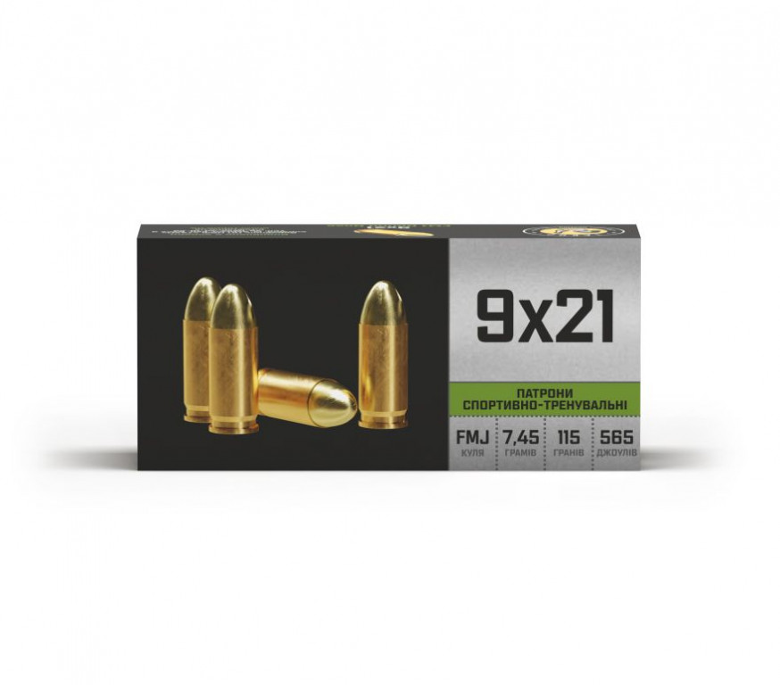Охотничий нарезной патрон для дичи до 50 кг. Патрон калибра 9х21 с классическими параметрами для точной и безопасной стрельбы. Патрон снаряжен матчевой пулей FMJ (Full Metal Jacket) для точной стрельбы, охоты, соревнований и спорта.