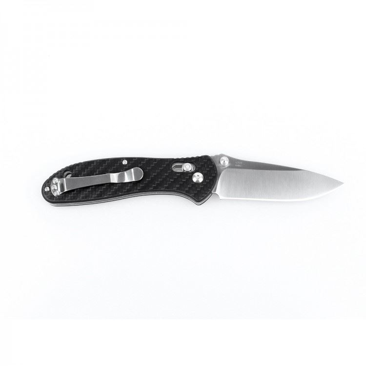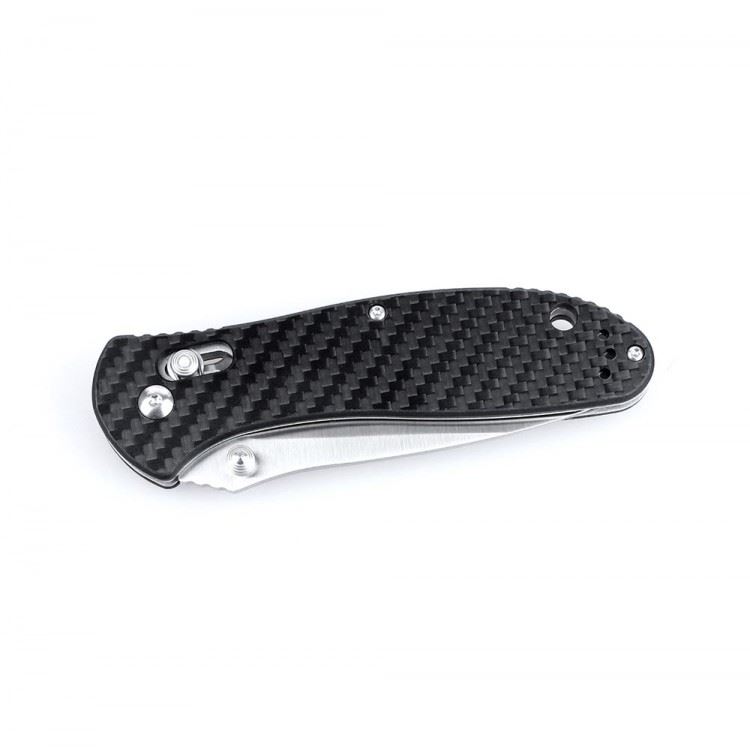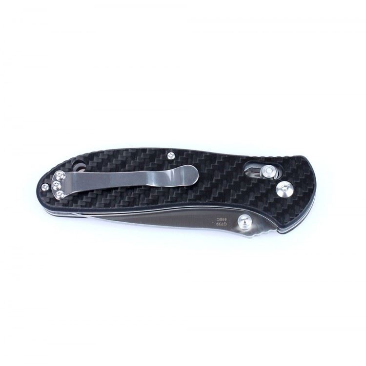 Ножик Ganzo G7391-CF предназначен для выполнения широкого круга работ во время любых поездок на природу или же активностей в городе. Он создан таким образом, чтобы требовать минимального ухода и быть полезным в самых разных случаях. Для лезвия ножа используется нержавеющая сталь 440С. Помимо того, что она может использоваться в условиях влажности, этот сплав может долго оставаться острым после заточки и относится к категории недорогих. А это дополнительные преимущества для ножа. Длина клинка выбрана равной 8,7 см. Лезвие отшлифовано так, что его поверхность полуматовая. На металле заметны следы от обработки методом сатинирования. Этот тип обработки очень популярен, поскольку позволяет получить привлекательный внешний вид ножа, на клинке которого не будут оставаться следы от пальцев и который будет блестеть только в прямых солнечных лучах. Заточено это лезвие гладко.