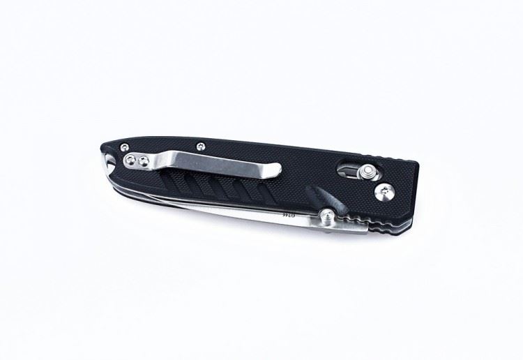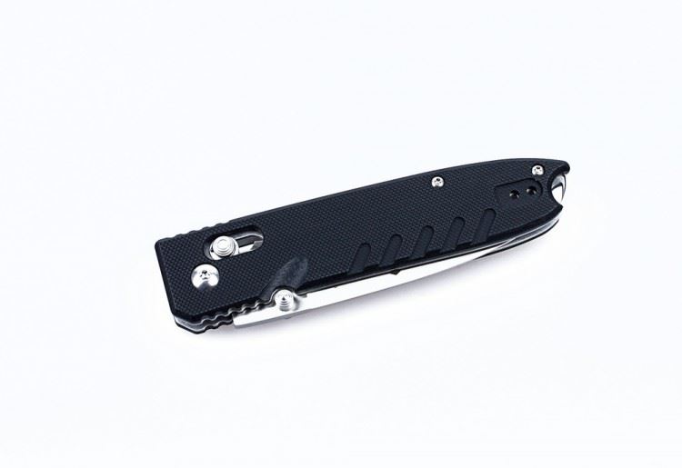 Третья немаловажная деталь складного ножа Ganzo G746-1 — это замок. Речь идет о механизме Axis Lock, основной деталью которого является подпружиненный штифт. Такой замок легко открыть при необходимости, но он ни в коем случае не даст ножу раскрыться самостоятельно. Поэтому носить Ganzo G746-1 в кармане совершенно безопасно. Единственное условие для его длительной службы — это поддержание механизма замка в чистоте.
